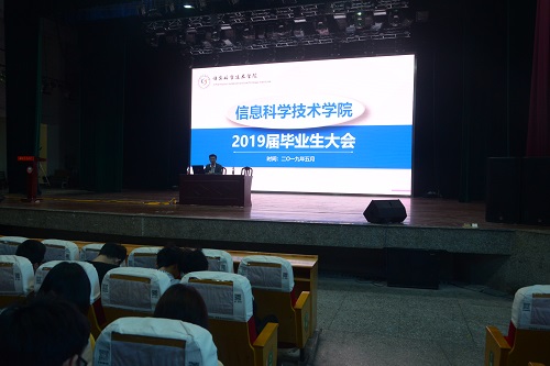 5月17日上午,信息科学技术学院2015级毕业生大会在大礼堂成功举行。出席本次会议的有党委副书记丁凯老师,校人武部雷志敏老师,学工组李威老师。信息院团委、学生会代表及全体毕业生参加了本次大会。