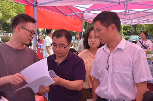 商学院党委书记李阿利及学工组老师莅临迎新现场进行了视察,并对2019级新生表达了深厚的关切。商学院副院长兼副书记莫华则表示,迎新人员要特别注意独自来校的新生,不仅要帮助新生完成入学报到,防止新生上当受骗,更要在心理上给予慰藉,让新生保持身心健康入学。