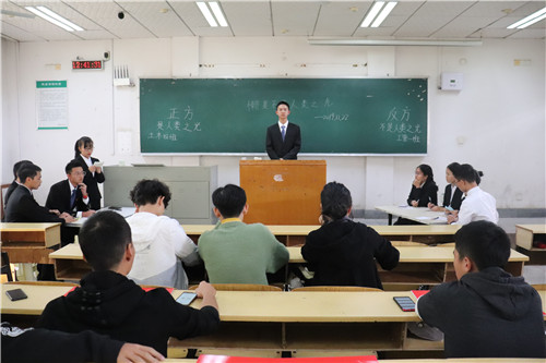 为提高大学生团队合作能力,锻炼大学生逻辑思考能力,11月20日,我校水利与土木工程学院第一届新生辩论赛第二轮小组赛正式开赛。第二组由土木四班与水利二班、土木一班与工管二班、土木三班与水利三班分别于七教新T3、T4、T5教室进行比赛。本次比赛邀请辩论队成员担任评委,参赛班级学生到场观看。