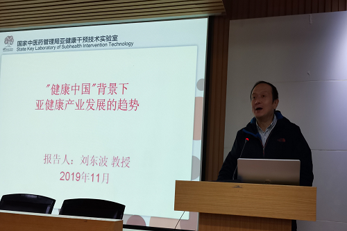 讲座伊始,刘东波教授为同学们讲解了与亚健康有关的人类疾病问题,并指出中药在预防和治疗亚健康方面的应用。刘教授结合当下热点问题,使同学们明确了我校中药研究方向,为中药专业同学今后的发展提供了新型模式。讲座中还提到国家需要复合型人才,当代大学生应以经典理论为基础,运用现代技术,与时俱进研发符合时代背景的时尚产品。紧接着,程辟教授对天然药物的开发做了简单的介绍。他还提到,最重要的是要立足当下,将平时老师在课堂上讲的内容掌握牢固才能向周边的发展方向努力。