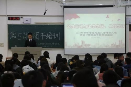 为了更好地适应变化,进一步提高团学干部服务同学的能力和发挥其带头作用,体育学院、公共管理与法学学院于12月7号上午在九教北301联合举办2019年青年马克思主义培训工程暨第57期团学干部培训。参会的领导有校团委副书记李娇老师和公管法学院党委书记莫华老师,团学干部有体育学院、公共管理与法学学院学生会新上任学生干部、2019级班长和团支书。同时,此次培训由李娇老师授课,体育学院组织部干事唐海珏主持。