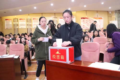 会议第一项全体起立,奏唱国歌。紧接着,由曾建英同志宣读上一级党组织对于选举的批复文件。上一级党组织对经济学院召开的此次大会表示同意。经济学院副院长李苏英同志宣读大会选举办法,在场所有党员表示同意该选举办法。经济学院院长刘辉同志公布此次换届选举的候选人名单,并介绍候选人的具体情况。由吴峰同志宣读换届选举投票环节的监票人、计票人名单,经宣读且大会同意后大会开始进行选举投票。为保持客观公正,监票人在投票的全程都在投票箱旁监督。在场每位党员按照宣读的选举办法在投票纸张上为自己支持的候选人投上一票。在紧张的计票环节后,由总监票人公布计票结果,所有候选人均获得投票人的半数投票,成功选举成为经济学院党委委员会成员。全体党员合唱国际歌宣告经济学院换届选举大会正式闭幕。