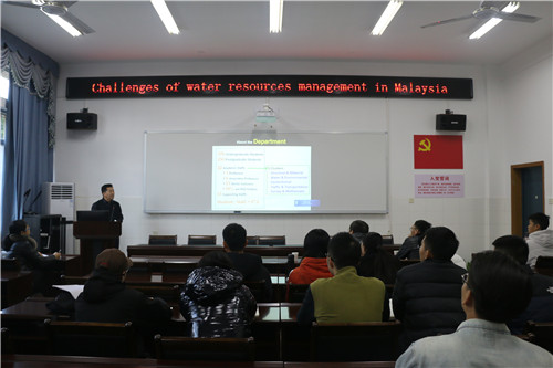 赖世兴教授本次学术讲座的主题是“马来西亚水资源管理的挑战”。讲座以城市洪水、水资源短缺以及水污染等主要问题展开。首先,赖世兴教授对马来西亚国内洪水发生的情况以及马来西亚城市水污染的严重性进行分析。他以河口城市为例,分析了影响发生城市洪水灾害的自然因素以及人为因素。他对突发洪水过程中不透水面的影响作出了解释,丰富了学生们对城市洪水的了解与认识。赖世兴教授指出,马来西亚虽然降雨丰富,但是降雨时空分布不均匀,干旱期经常出现严重的水资源短缺的困境。随后,赖世兴教授从水资源管理、利用和调控等不同角度,对马来西亚的缺水问题进行深度剖析。