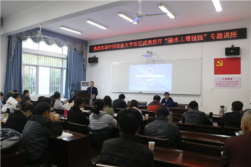 12月14日,现任世界水土保持学会副主席、中国农业工程学会理事、中国水土保持学会常务理事、中国农业大学雷廷武教授于八教北110会议室作“融水土壤侵蚀”学术讲座。此次会议由水利与土木工程学院院长王辉主持,学院教师和研究生代表参加此次讲座。