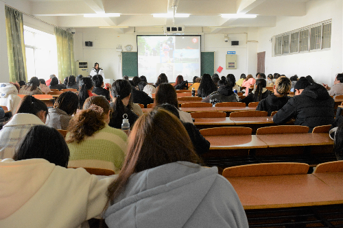 活动伊始,金雅老师先给同学们播放了一段视频。视频中,一方面介绍了团队自创立开始到现在的合作院校和成就、以及在实践活动中可以选择的工作岗位及住宿情况。另一方面也展示了参加赴日实践的同学们在日本的饮食、景点游玩的照片。视频中多姿多彩的生活吸引了在场同学们的兴趣。随后、金雅老师用PPT进一步介绍了赴日实践活动的主办方及赴日实践项目的背景;同时,她从开展时间、实习岗位、实习环境、参加资格、参加费用、参加流程及人身安全等多方面,向同学们详细解读了赴日实践项目。她还谈及道,参加赴日实践活动有利于扩宽同学们的国际视野并且也有助于完善同学们的职业规划,对未来有更清晰的蓝图构想。