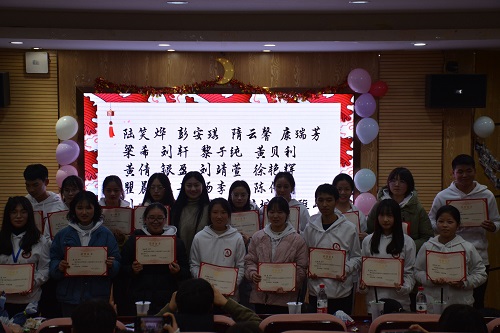 随后主持人播放了部长副部们的采访视频,在座的老师和干事们都听到了他们发自内心的告白以及对未来的期待。为了能让大家勇敢地说出心里话,主持人关闭灯光屏幕,把话筒交给了观众,大家在黑暗中回忆了进入部门来印象最为深刻的事,描绘了部长副部们在自己心里的形象,表达了对部长副部们的感谢以及未来将会更加努力认真工作的决心。孙君镕老师看到此情此景,也起身讲述了自己的感受。她提出自己六年来一直坚持做团委学生会的工作,是因为热爱团委学生会。团委学生会最为动人之处就是它有着无可比拟的归属感,每一位成员都以诚相待,互相帮助,为团委学生会贡献着属于自己的力量。她希望大家能够快速成长,把这份热爱传承下去,把团委学生会建设得更好。最后,孙老师亲自为获评优秀干事的同学颁发奖状。所有人一起合影留念之后,本次活动宣告圆满结束。