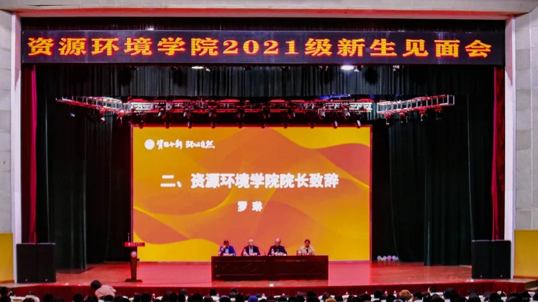 为帮助新生更快更好的了解并融入学院生活,促进新生和老师的交流。10月13日晚上,资源环境学院于大礼堂举行2021级新生见面会。资源环境学院院长罗琳、副院长王华、党委副书记刘峻峰、新生班主任、教师代表及2021届研究生新生、本科新生参与本次会议。资环院党委书记周江出席并主持本次大会。
