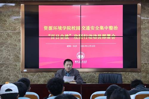 为贯彻落实学校校园交通安全集中整治“百日会战”攻坚行动部署,进一步增强广大师生交通安全法规意识和安全文明意识,规范校园交通行为。11月12日上午,资源环境学院于八教北408会议室举行校园安全集中整治“百日会战”攻坚行动动员部署会议。会议由资环学院党委副书记刘峻峰主持召开,各年级辅导员、团委学生会主席团成员、研究生、本科生各班班班长团支书参加。
