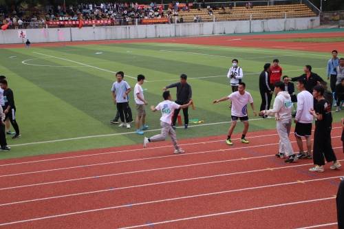 11月12日下午,学生组4*400接力赛在东田径场如火如荼地展开。经济学院的四名女将刘家嘉、刘莒清、王心怡、姚瑶和四名男将邬添柱、韩靖祥、柏玛、赵江雲积极参与其中。