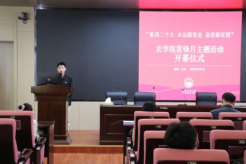 为弘扬“向上,向善,热爱,奉献”的雷锋精神,深入挖掘雷锋精神的时代内涵,号召青年大学生践行雷锋志愿服务,3月4日晚上,农学院在12教617会议室举行“弘扬新时代雷锋精神,以奉献共建和谐校园”主题团课。2021级辅导员李铁玉,团委主席团成员,各部门负责人和志愿者代表参与了此次活动。开幕式由青年志愿者服务团成员曹睿主持。